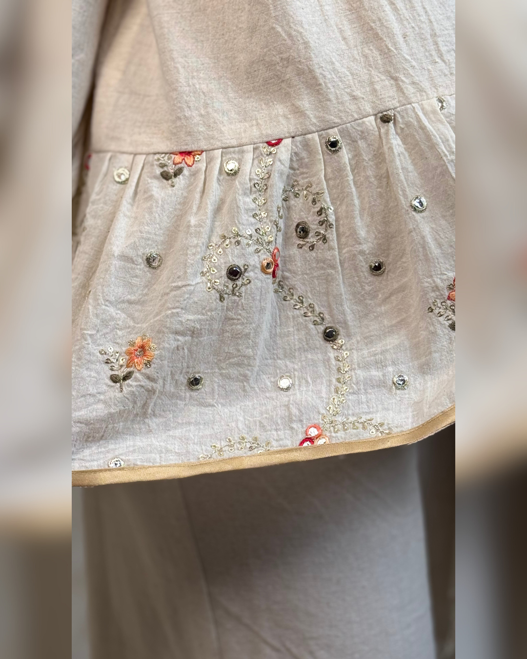مراقبت: برای مراقبت از وست سوزندوزی لینن، بهتر است آن را با دست یا در ماشین لباسشویی با تنظیمات ملایم شست و اتو کرد.
