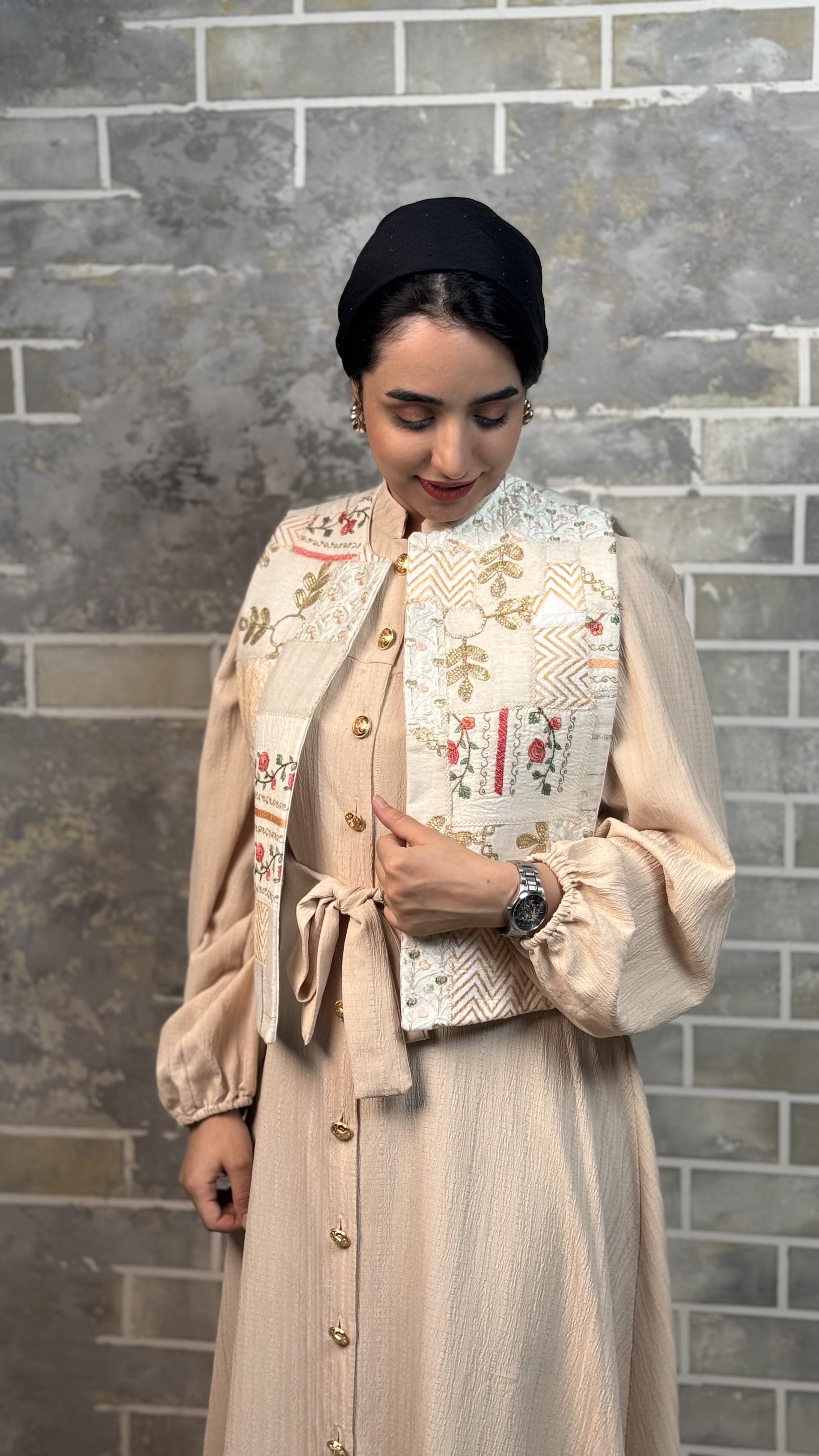 وست سنتی زنانه، جلیقه لینن تیکهدوزی، وست دستدوز گلدار، جلیقه زنانه مجلسی، رویه بدون آستین لینن، لباس سنتی مدرن، وست تابستانی زنانه، جلیقه خاص زنانه، وست لینن گلدوزی