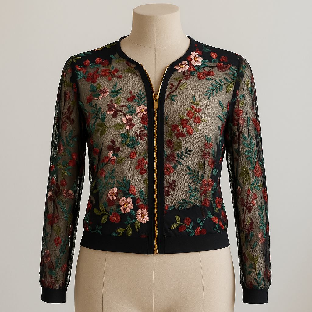 بامبر زنانه، بامبر دانتل، بامبر گلدوزی، بامبر جکت مشکی، کاپشن زنانه تابستانی، لباس مجلسی زنانه شیک، رویه زنانه مجلسی، استایل تابستانی زنانه، بامبر دخترانه شیک