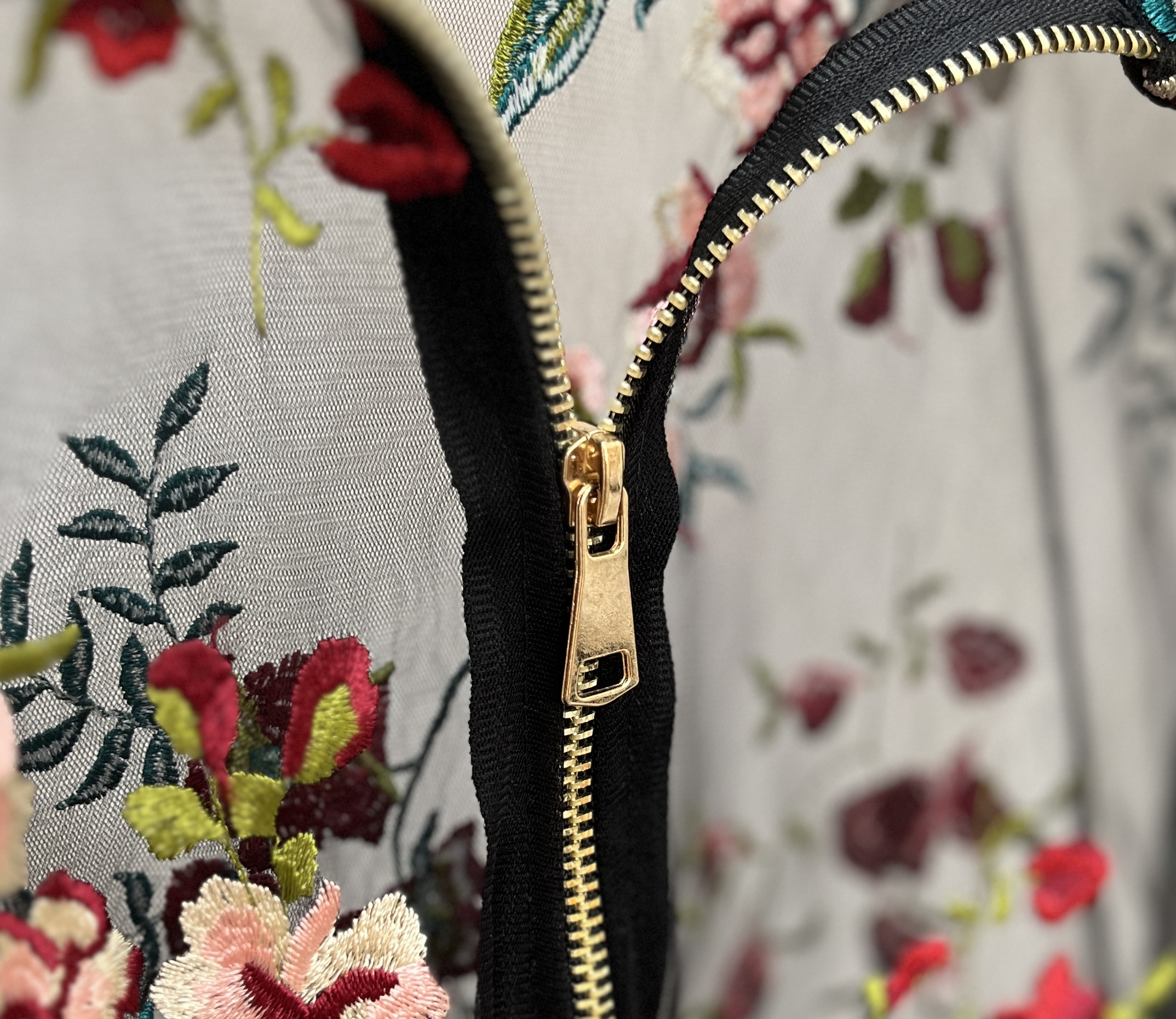 🔹 طراحی: مدل بامبر جکت با زیپ طلایی جلو