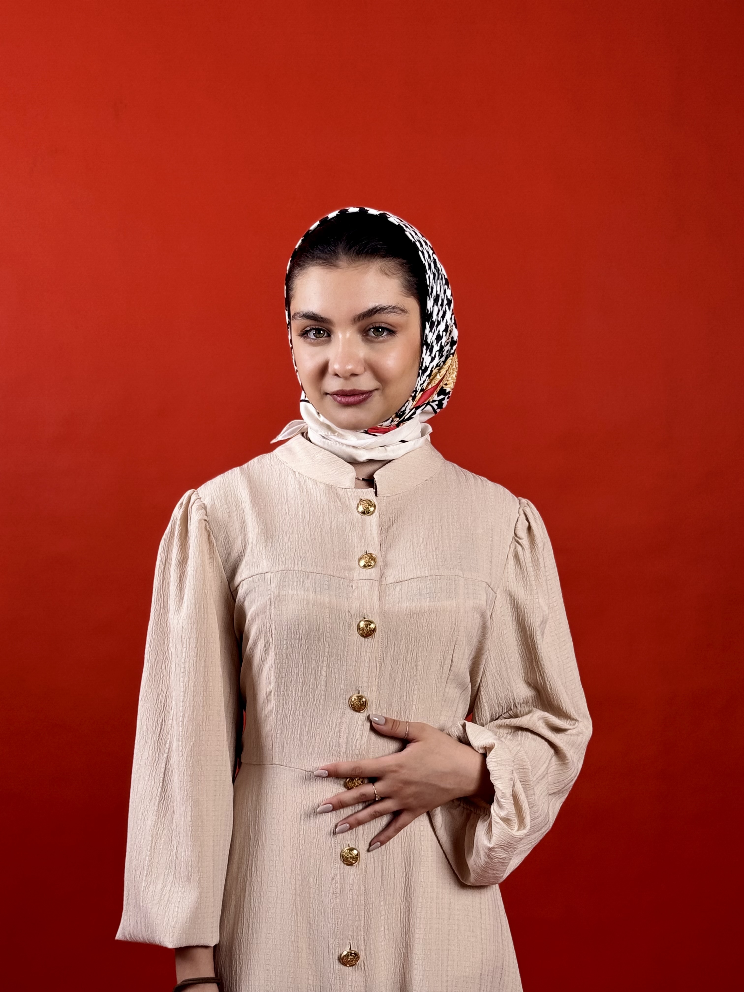 - خنثی و شیک: رنگ کرم، یک رنگ خنثی و ملایم است که به راحتی با سایر رنگها و طرحها ست میشود. این رنگ، ظاهری شیک و کلاسیک به پیراهن میبخشد و میتواند به خوبی با رنگ پوست شما هماهنگ شود.